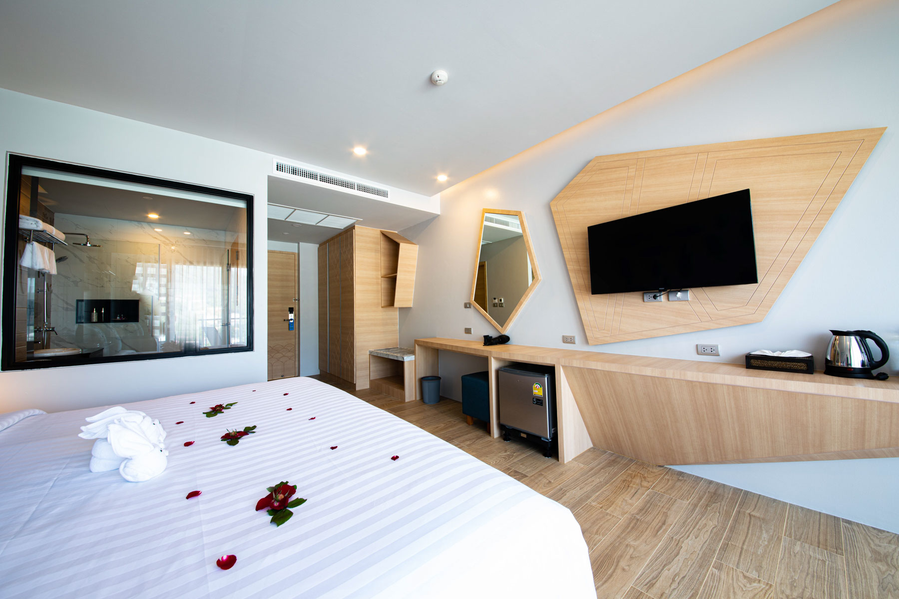 Golden Paradise Hotel Accommodations Superior Double Room Bed: Double Bed Space: 28 sqm. Explore Superior Double Room with Sea View Bed: Double Bed Space: 28 sqm. Explore Deluxe Double or Twin Room Bed: Double / Twin Bed Space: 33 sqm. Explore Deluxe Double or Twin Room with Sea View Bed: Double / Twin Bed Space: 33 sqm. Explore Executive Room Bed: Double Bed Space: 42 sqm. Explore Family Suite Two - Bedrooms Room Bed: Double Bed Space: 70 sqm. Explore