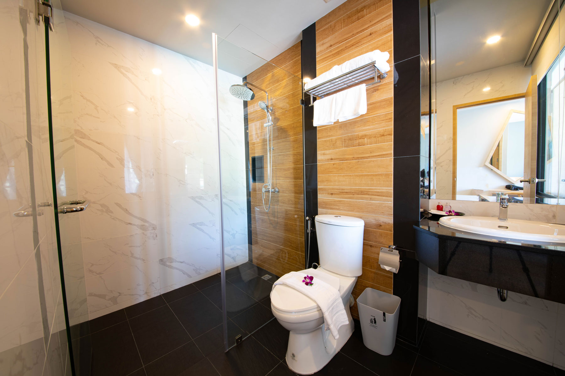 Separate shower with hot & cool water